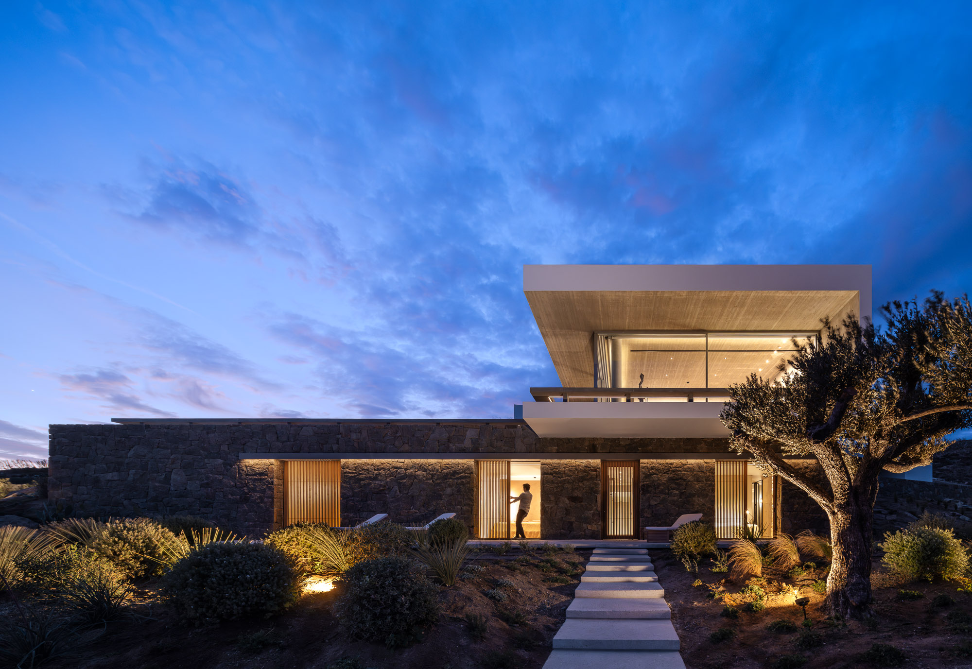 Το 850 τετραγωνικών κτίριο ανοίγει προς τα νότια προς μια εντυπωσιακή θέα στη θάλασσα και την παραλία της Ελιάς και προς τα ανατολικά προς έναν επιβλητικό βραχώδη γρανιτένιο λόφο, γεμάτο παλιούς τοίχους από ξερολιθιά που έχουν χαρακτηριστεί από την UNESCO ως ορόσημα άυλης πολιτιστικής κληρονομιάς. Η κατοικία προσφέρει οικείους και εκτεταμένους χώρους αναψυχής, διατηρώντας οπτική αρμονία με το περιβάλλον.