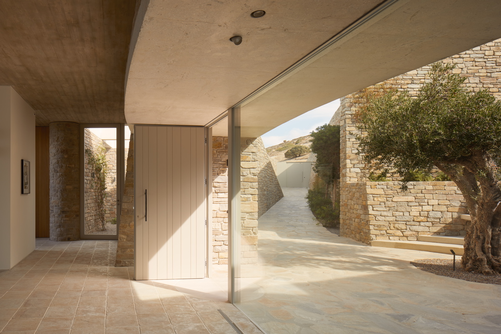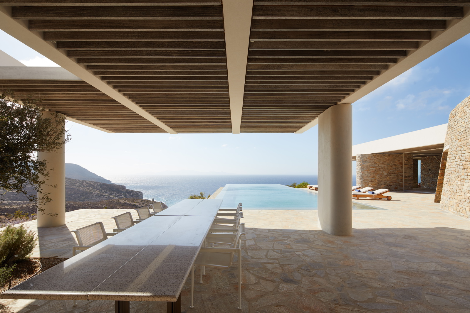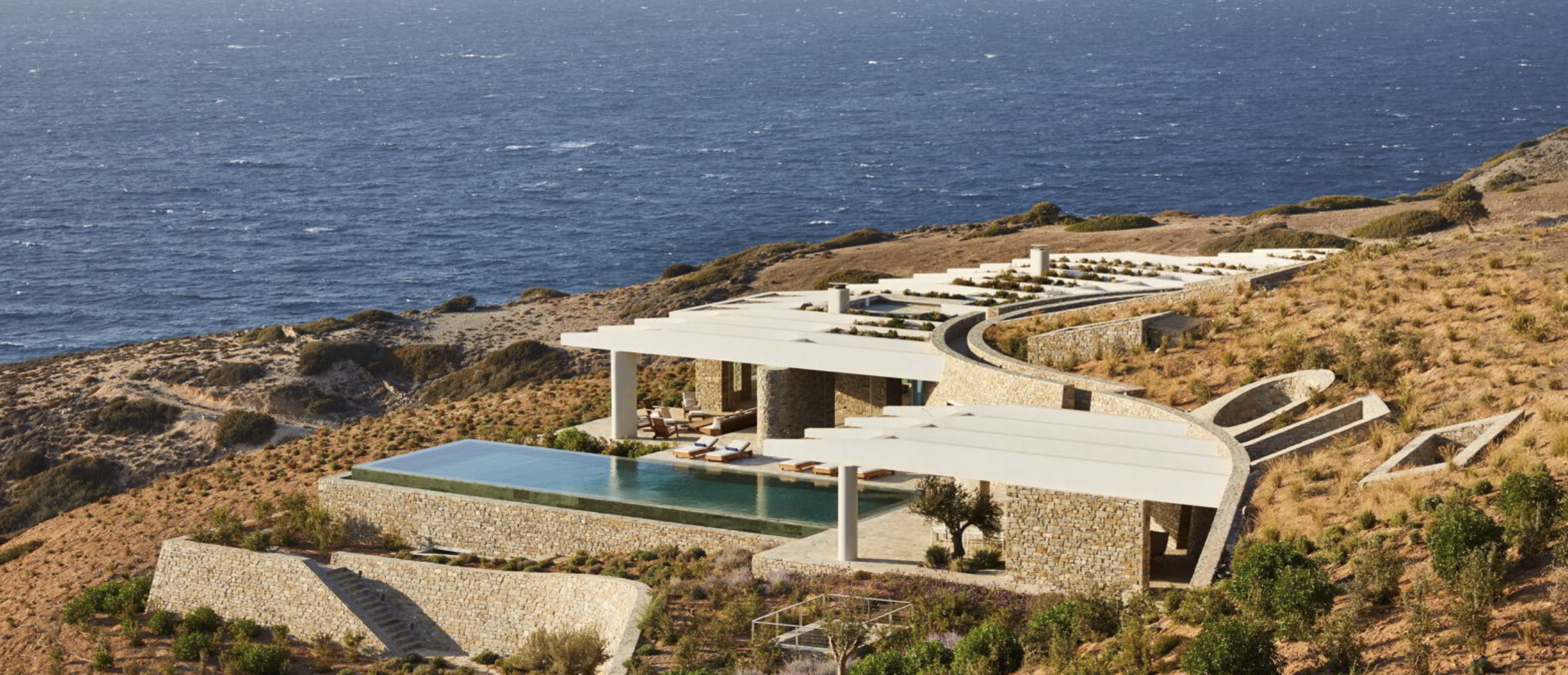 Το γραφείο AREA, Architecture Research Athens ανέλαβε το σχεδιασμό μίας μοναδικής εξοχικής κατοικίας στην Αντίπαρο, που αγκυρώνεται στο βράχο με τη μορφή ενός καμπύλου αναλημματικού τοίχου που ακολουθεί τις υψομετρικές καμπύλες του φυσικού εδάφους.
