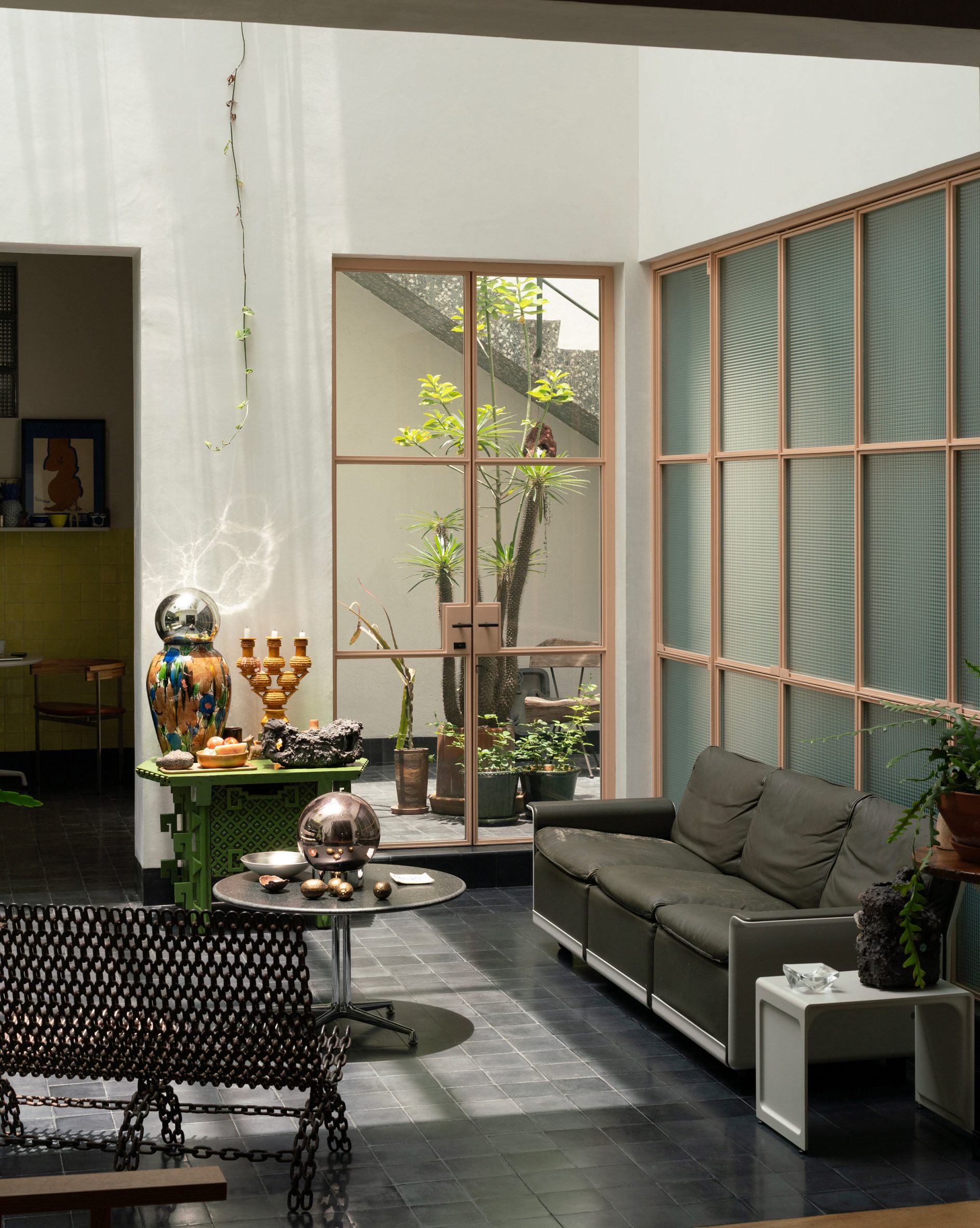 Σε όλο το σπίτι, η συλλογή γλυπτών, επίπλων και αντικειμένων του Cerrillo ενσωματώνεται οργανικά στον αρχιτεκτονικό καμβά. Κυκλικά ανοίγματα, φυτεύσεις και υλικά με υφή προσθέτουν χαρακτήρα, χωρίς να διαταράσσουν τη συνοχή του συνόλου.