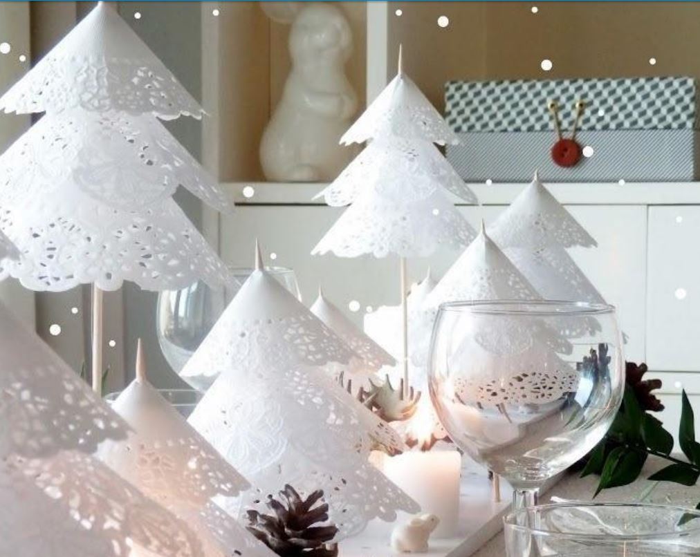 Έχετε στο σπίτι κεντητά σεμέν και δεν ξέρετε τι να τα κάνετε, καθώς τα θεωρείτε αναχρονιστικά για τη σύγχρονη διακόσμηση; Ε λοιπόν, τα κομμάτια υφάσματος αυτά μπορούν να χρησιμεύσουν με πολύ όμορφο τρόπο στην δημιουργία του χριστουγεννιάτικο στολισμού. Πάρτε ξύλινα καλαμάκια και στερεώστε κάθετα τα κομμάτια σεμέν σε διάφορα επίπεδα. Έτσι, θα δημιουργήσετε λευκά χριστουγεννιάτικα δεντράκια, φτιάχνοντας τελικά ένα ολόκληρο δάσος.