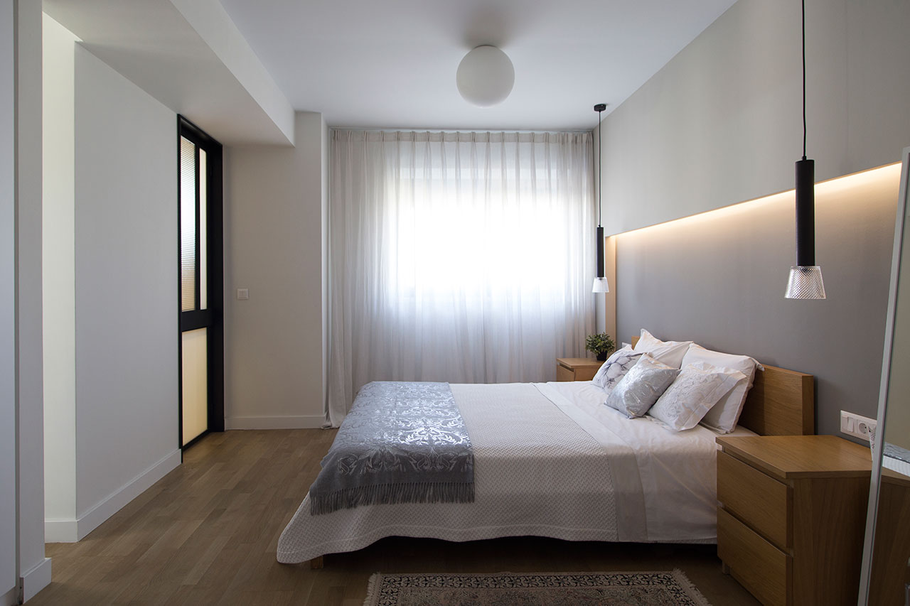 O φυσικός και τεχνητός φωτισμός όλου του διαμερίσματος αποτελεί βασικό στοιχείο του σχεδιασμού της κατοικίας, ενισχύοντας την ένωση του εσωτερικού με τον εξωτερικό χώρο και αντίστροφα. Τα διαφορετικά σενάρια φωτισμού, ένας συνδυασμός διάχυτου, έμμεσου και φωτισμού νυκτός, δημιουργούν μία άνετη και ήρεμη ατμόσφαιρα στον χώρο. Η χρήση τόσο κατευθυνόμενων φωτιστικών όσο και κρυφού φωτισμού με ταινίες led συμπληρώνουν αποτελεσματικά στο παραπάνω επιθυμητό φωτιστικό αποτέλεσμα.