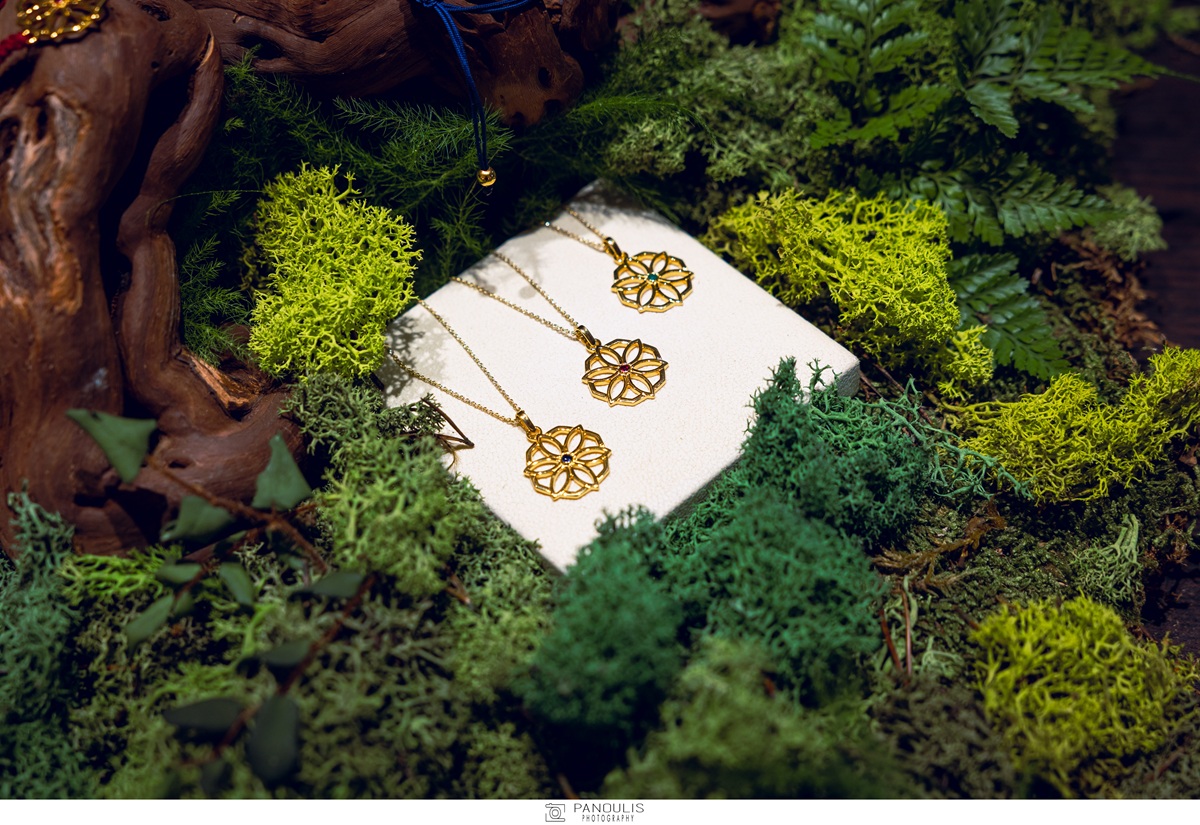 Η συλλογή αντλεί έμπνευση από τη συμμετρική αρμονία του εξαπέταλου «Άνθους της Ζωής» και περιλαμβάνει κολιέ, βραχιόλια, δαχτυλίδια και σκουλαρίκια από χρυσό 18 καρατίων και ασήμι, διακοσμημένα με πολύτιμους λίθους σε ζωηρές αποχρώσεις.