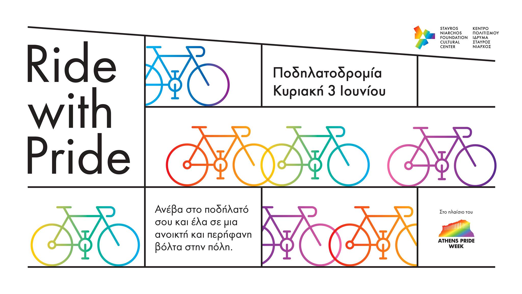 Στο πλαίσιο του Athens Pride Week τo Κέντρο Πολιτισμού Ίδρυμα Σταύρος Νιάρχος (ΚΠΙΣN), σας προσκαλεί σε μια ανοικτή και περήφανη ποδηλατοδρομία στην πόλη, με τελικό προορισμό ένα live DJ set στο ΚΠΙΣΝ, υπό τους ήχους των Rrose Sélavy και s-for-sugar.