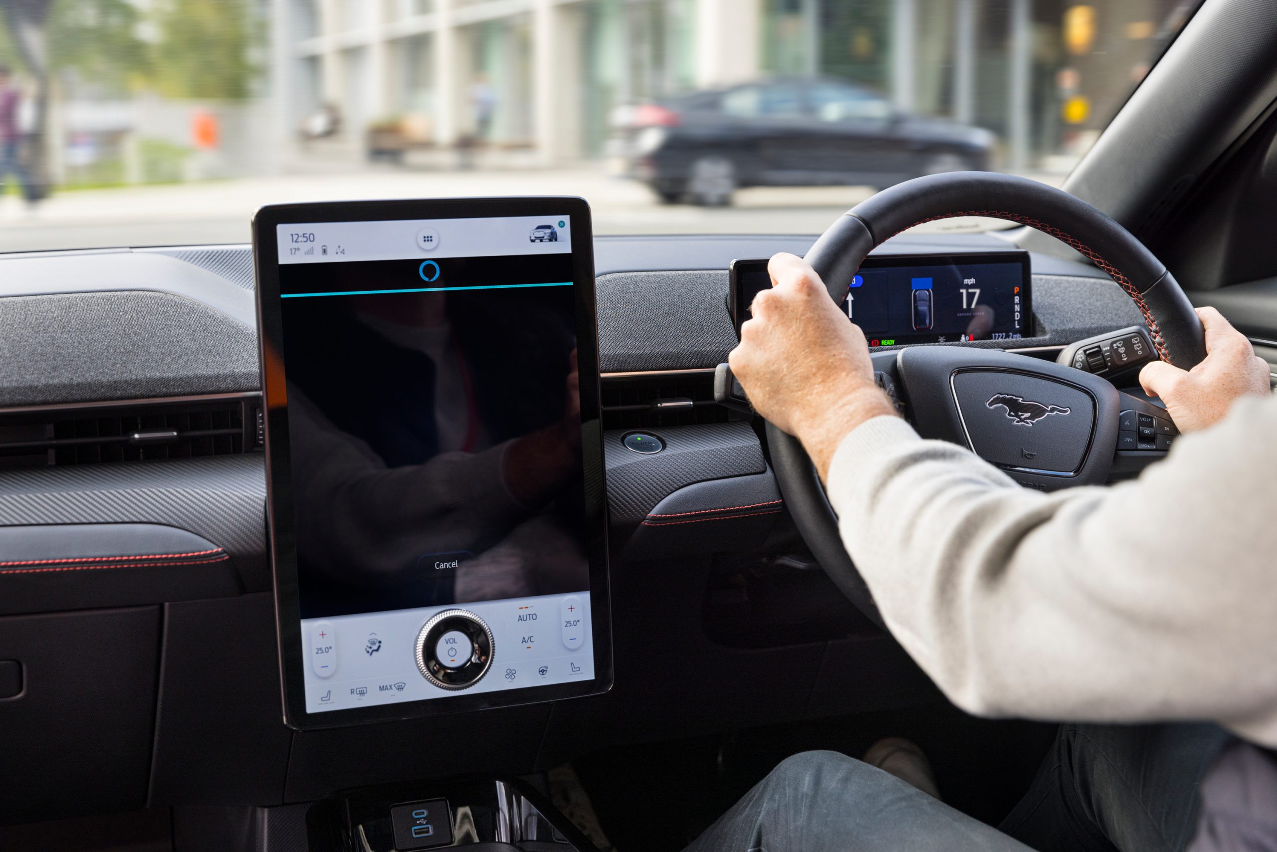 Οι οδηγοί μπορούν επίσης να τα εναλλάσσουν, ώστε να έχουν πρόσβαση τόσο στα επαγγελματικά όσο και στα προσωπικά τους τηλέφωνα. Η διπλή σύζευξη τηλεφώνου διατίθεται με τα μοντέλα Ford Mustang Mach-E, Mustang Mach-E GT.