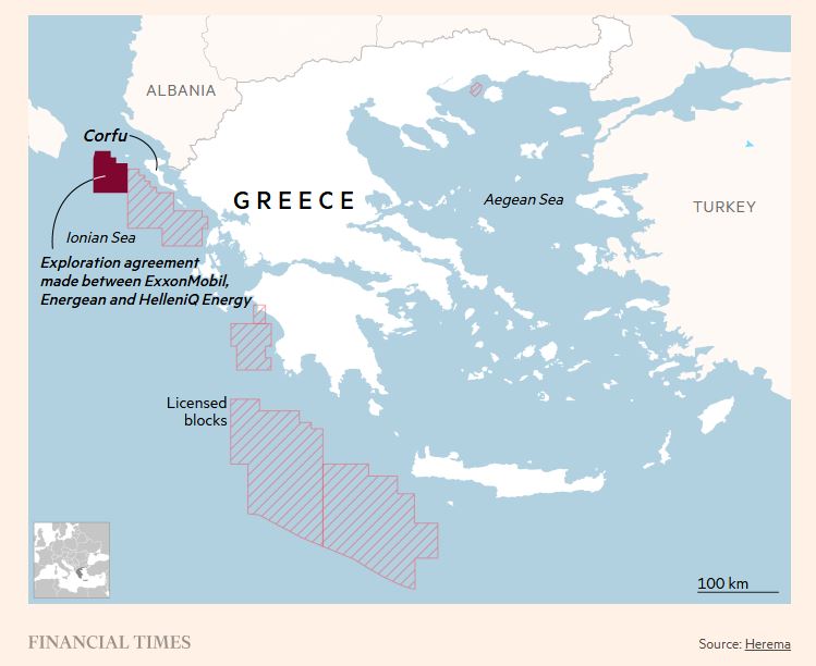 Η Ελλάδα υπέγραψε την πρώτη της συμφωνία για υπεράκτια έρευνα φυσικού αερίου εδώ και τέσσερις δεκαετίες, σε μια ιστορική συμφωνία με επικεφαλής την ExxonMobil, η οποία σηματοδοτεί το αυξανόμενο ενδιαφέρον της Ουάσιγκτον για την ανατολική Μεσόγειο, αναφέρουν οι FT.