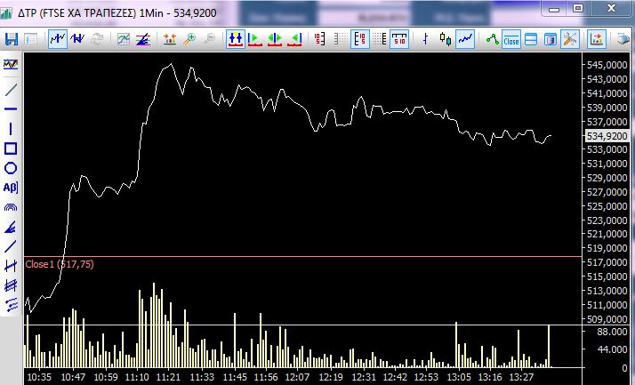 Σε θετική τροχιά συνεχίζουν τη διαδρομή τους οι τραπεζικοί τίτλοι, ωστόσο τα κέρδη του υποκείμενου δείκτη, περιορίστηκαν στο +3,5% από +5,30% νωρίτερα. Η Alpha Bank κινείται 3,8% υψηλότερα, η Τρ. Πειραιώς (+3,98%), η ΕΤΕ (+1,99%) και η Eurobank (+2,68%).
