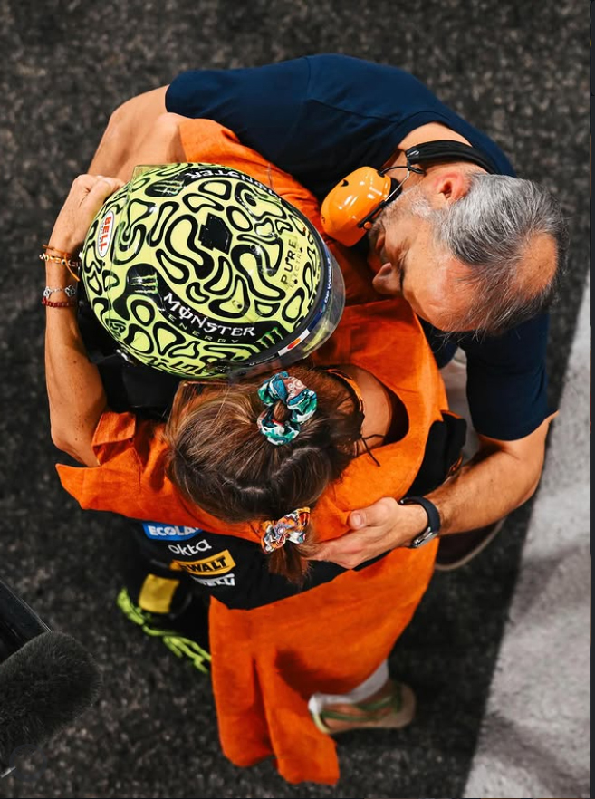 Αυτός είναι ο Νόρις τόσο αυθόρμητος που δεν σταμάτησε να κλαίει για ώρα μετά το πέσιμο της καρό σημαίας και ενώ ήταν παρούσα όλη η οικογένεια αυτός έτρεξε στην αγκαλιά της μαμάς του.