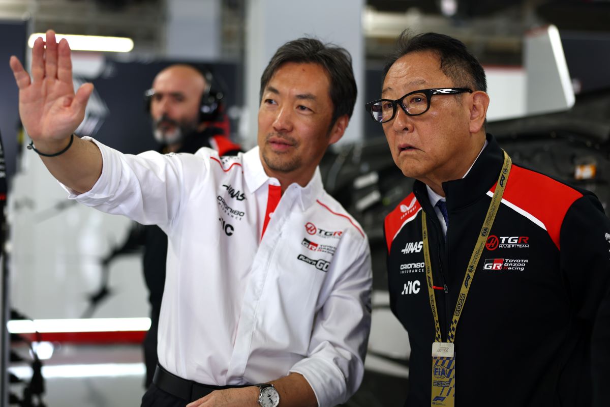 Ο Άκιο Τογιόντα (δεξιά) επενδύει στη F1, μέσω της Haas. Βρέθηκε στη Σουζούκα (ιδιόκτητη πίστα της Honda) όπου είχε την ευκαιρία να μιλήσει με τον επικεφαλής της Haas, Άγιο Κομάτσου.