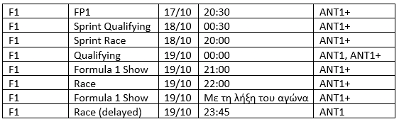 ΑΝΑΛΥΤΙΚΑ ΟΙ ΜΕΤΑΔΟΣΕΙΣ ΚΑΙ ΕΚΠΟΜΠΕΣ ΤΟΥ 19ου GRAND PRIX ΣΕ ΑΝΤ1 ΚΑΙ ΑΝΤ1+