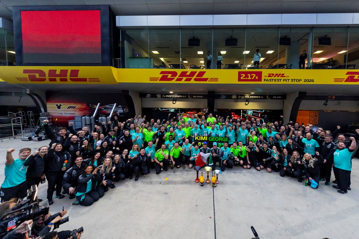 Πανηγυρισμοί από την ομάδα της Mercedes για το 1 – 2 στην Κίνα. Προηγούμενη φορά που είχαν καταφέρει κάτι ανάλογο ήταν το 2019 με τους Χάμιλτον Μπότας.