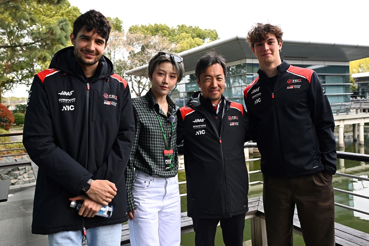 Η καλλιτέχνης Yuxin Liu με την ομάδα της Haas: Οκόν, Κομάτσου Μπέρμαν.