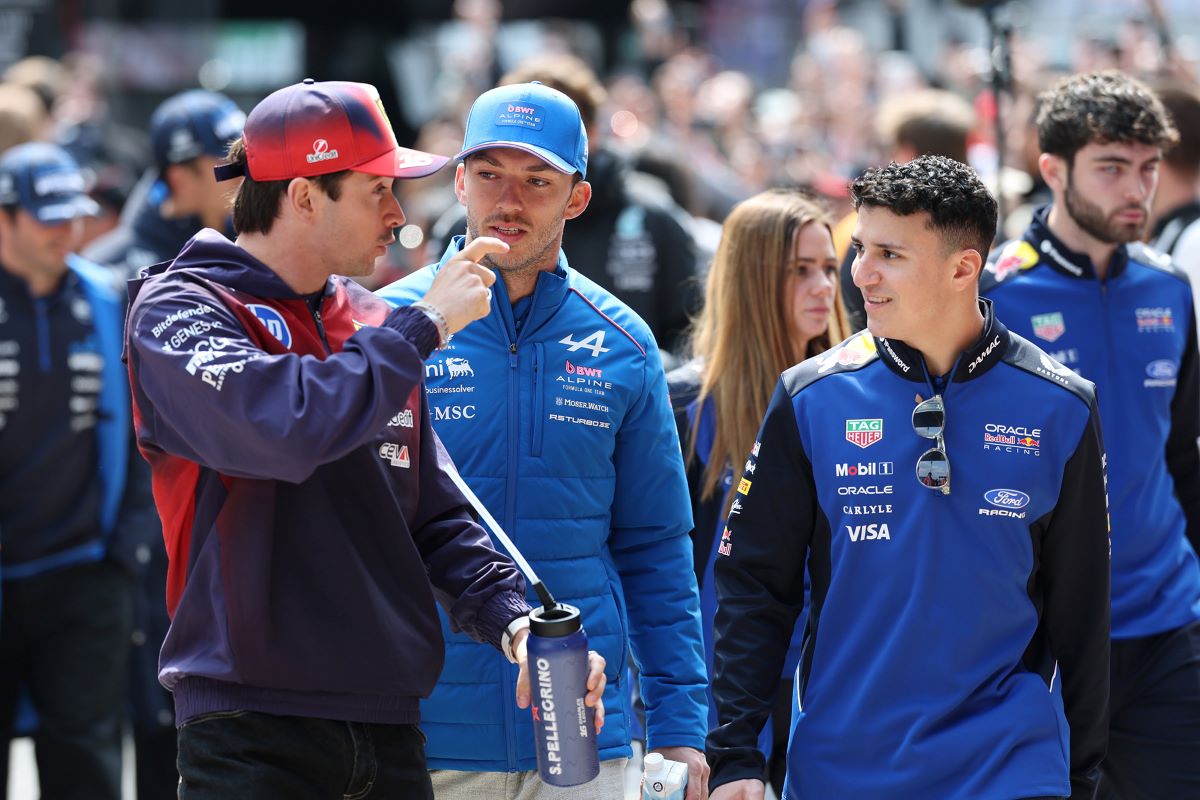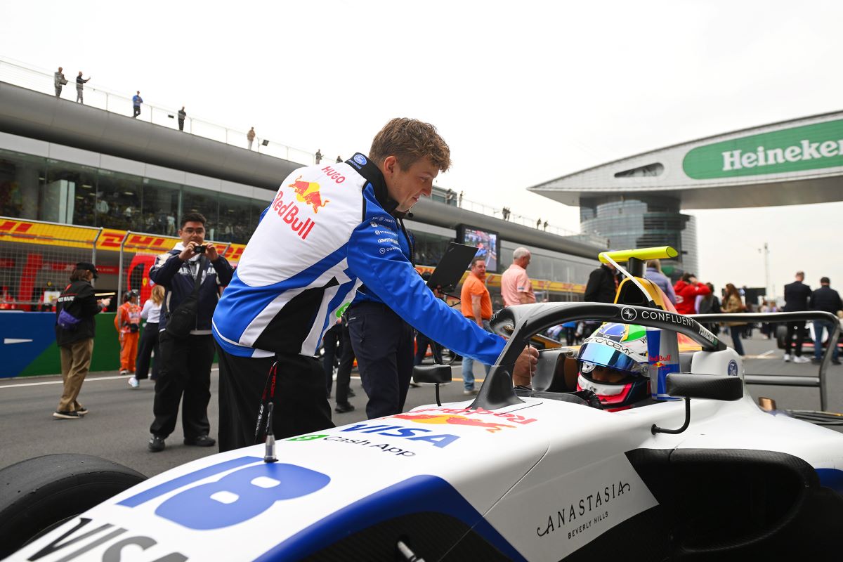 Ο Λίαμ Λώσον ενθαρρύνει στο grid την Βραζιλιάνα Ραφαέλα Φερέιρα πριν τον πρώτο αγώνα της F1 Academy.