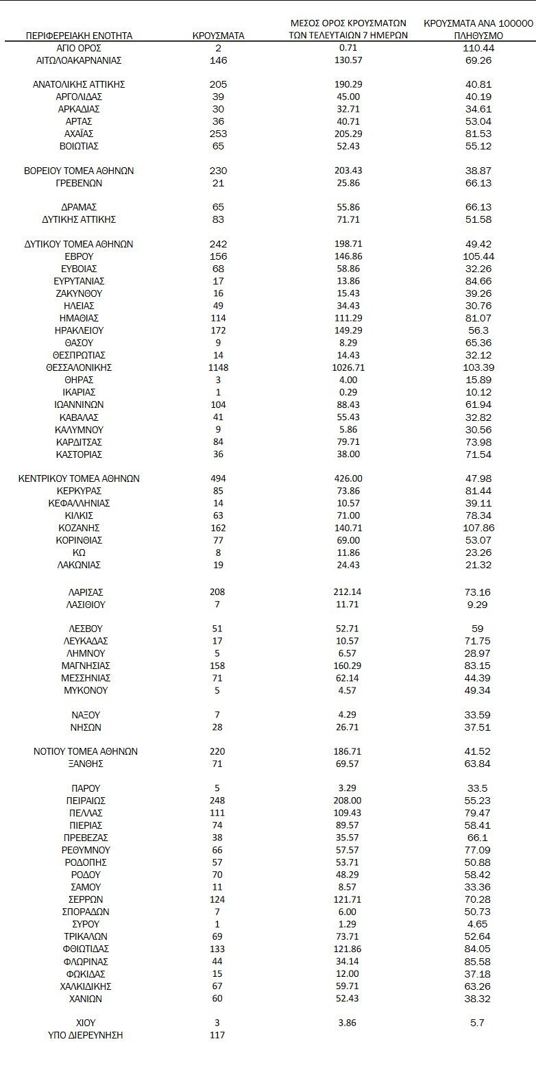 Δείτε την ημερήσια έκθεση επιδημιολογικής επιτήρησης
