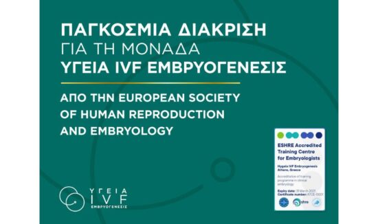 - Παγκόσμια διάκριση για τη Μονάδα ΥΓΕΙΑ IVF Εμβρυογένεσις από την European Society of Human Reproduction and Embryology (ESHRE)