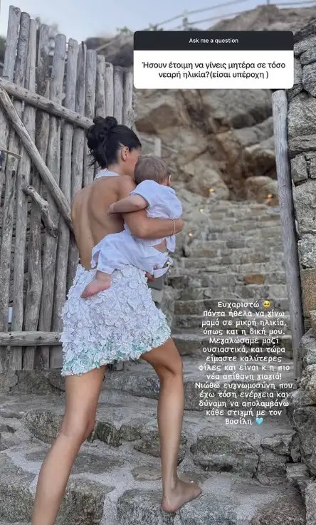 Νιώθω ευγνωμοσύνη που έχω τόση ενέργεια και δύναμη να απολαμβάνω κάθε στιγμή με τον Βασίλη» αποκάλυψε, βάζοντας μάλιστα μια φωτογραφία με τον γιο της.