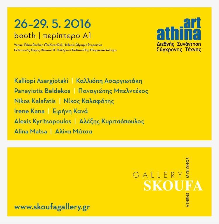 Στην Art Athina θα συμμετάσχουν επίσης οι Καλλιόπη Ασαργιωτάκη, Παναγιώτης Μπελντέκος, Νίκος Καλαφάτης, Ειρήνη Κανά και ο Αλέξης Κυριτσόπουλος.