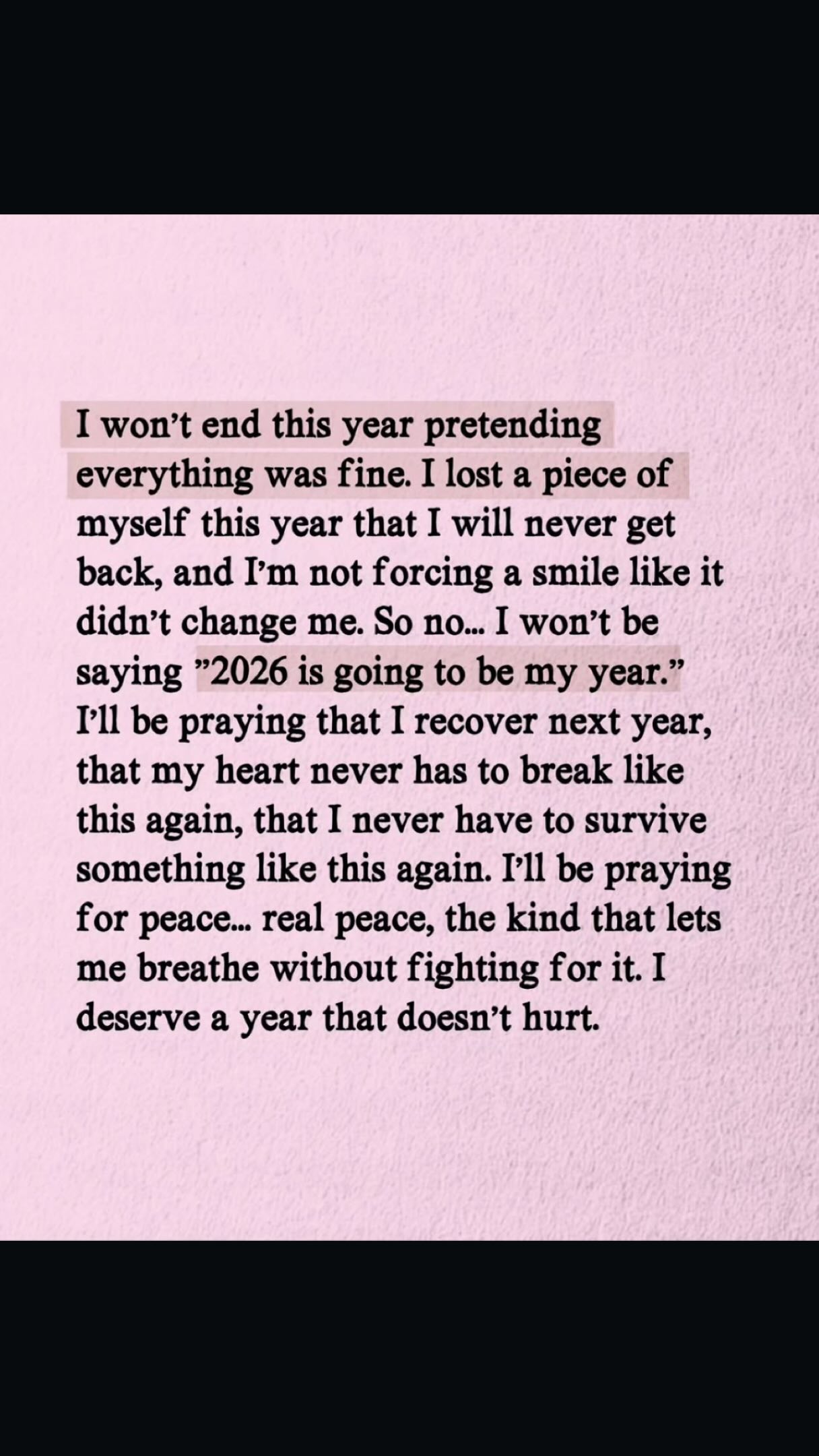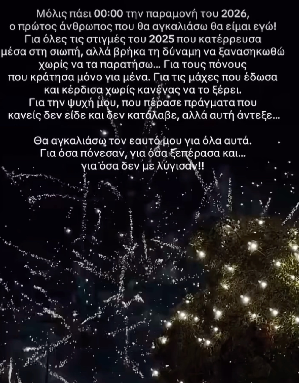Παράλληλα, ανέβασε και διάφορα κειμενάκια που τον εκφράζουν, όπως το παρακάτω, το οποίο αναφέρει πως ο χρόνος που πέρασε ήταν δύσκολος και ελπίζει το νέος έτος να είναι ήρεμο, χωρίς πόνο.