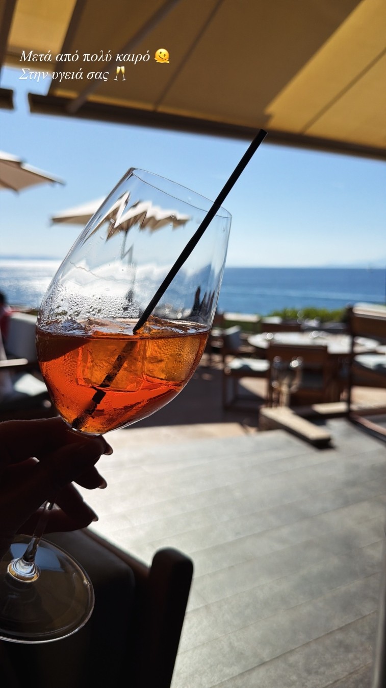 Η Κατερίνα Καινούργιου εκμεταλλεύτηκε τον ηλιόλουστο καιρό και βγήκε μετά από πολύ καιρό για να απολαύσει ένα άπερολ, με θέα το απέραντο γαλάζιο.