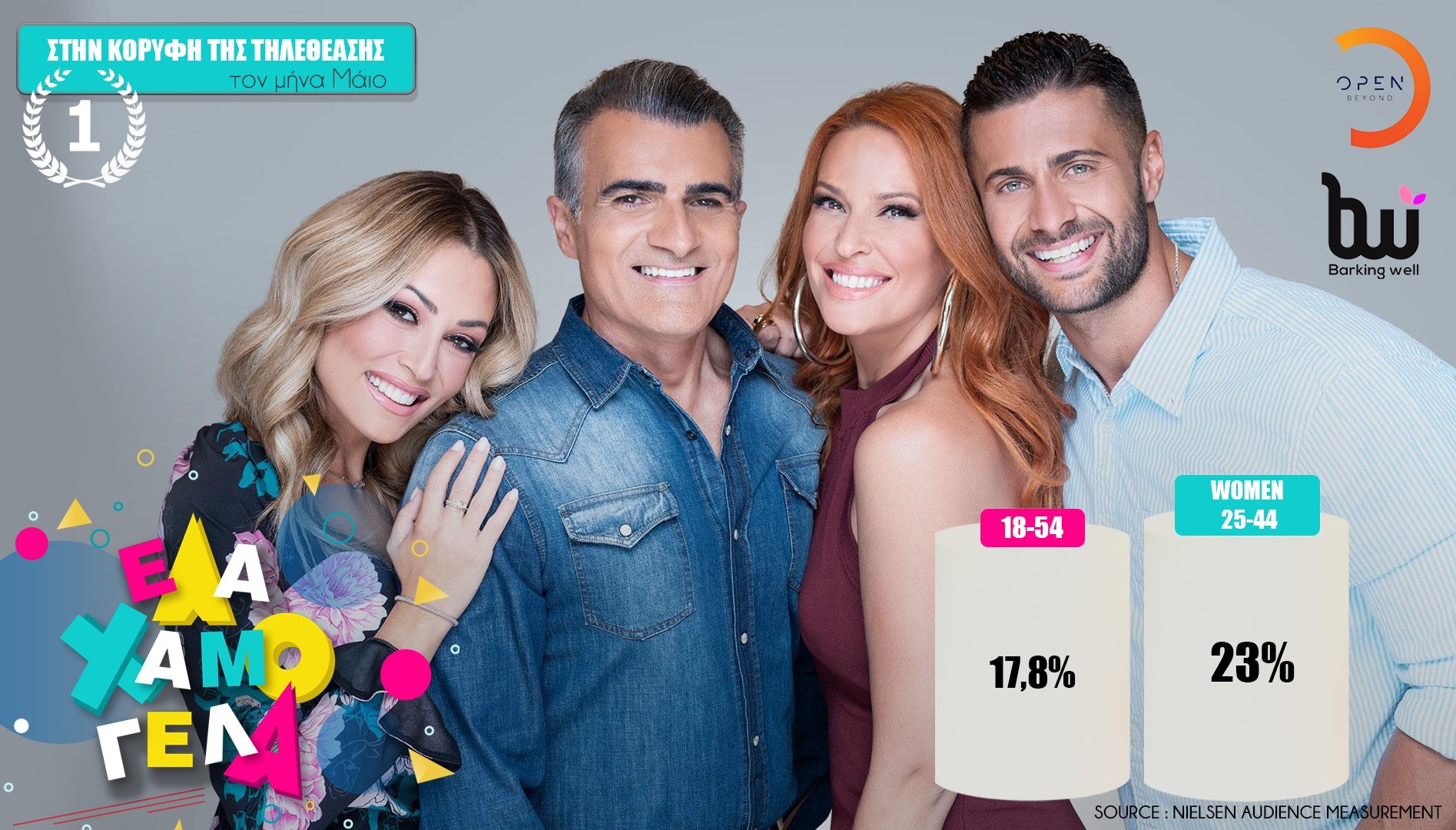 Το «Έλα Χαμογέλα» στο OPEN με τη Σίσσυ Χρηστίδου, μονοπώλησε το ενδιαφέρον των τηλεθεατών τερματίζοντας πρώτο στη ζώνη προβολής του, τον μήνα Μάιο. Στο δυναμικό κοινό 18-54 σημείωσε μέσο όρο 17,8% υπερισχύοντας του ανταγωνισμού. Ακόμα υψηλότερα ήταν τα ποσοστά της στα γυναικεία κοινά, με τις γυναίκες 25-54 να σημειώνουν 23% και να αφήνουν το δεύτερο κανάλι πίσω κατά 8,6 μονάδες.