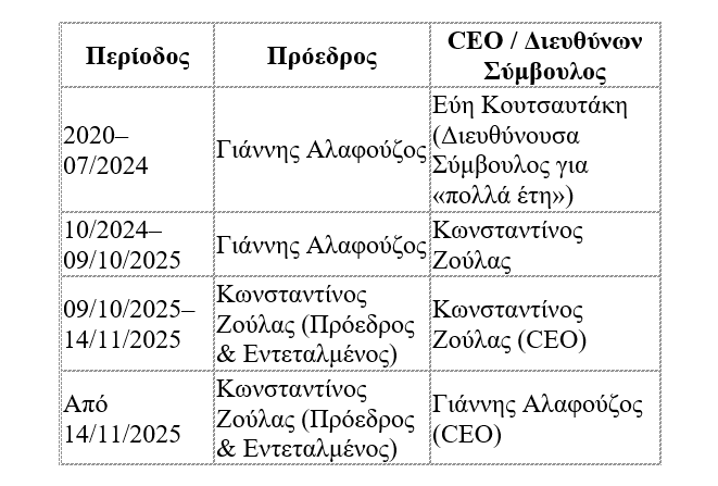 – Ο Αλαφούζος παίρνει την ευθύνη του Διευθύνοντος Συμβούλου.