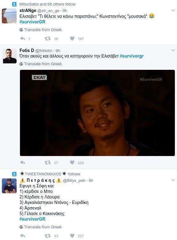 Για ένα ακόμα βράδυ, το survivor μας κράτησε συντροφιά και όπως ήταν αναμενόμενο το twitter πήρε φωτιά. Μπορεί το αποτέλεσμα της χθεσινής αναμέτρησης να είχε γίνει γνωστό, πριν την προβολή του επεισοδίου, όμως, αυτό δεν πτόησε τους εκατομμύρια τηλεθεατές που παρακολουθούν το παιχνίδι επιβίωσης.