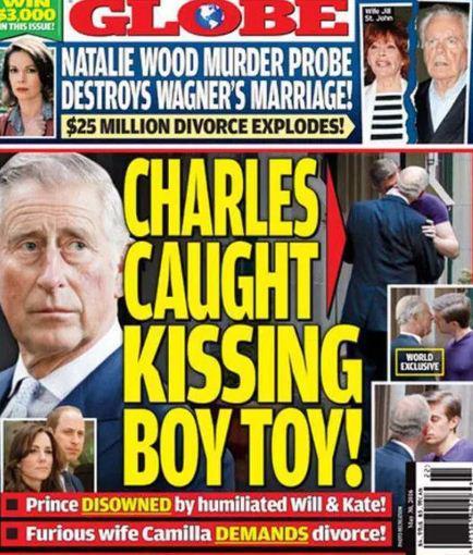 Σοκ στα Ανάκτορα του Μπάκιγχαμ από πρωτοσέλιδο σκανδαλοθηρικού περιοδικού. Το γνωστό για τα προκλητικά του πρωτοσέλιδα, Globe, έφερε νέους μπελάδες για τη βασιλική οικογένεια, δημοσιεύοντας φωτογραφίες του Πρίγκηπα Καρόλου να φιλάει στο στόμα ένα νεαρό άνδρα.