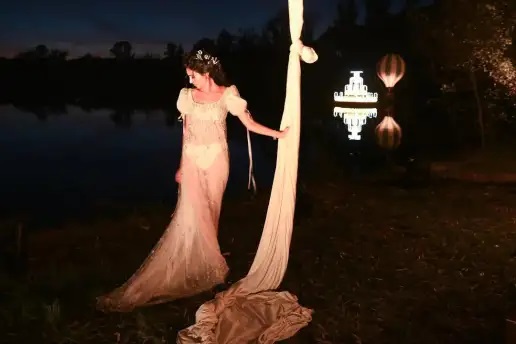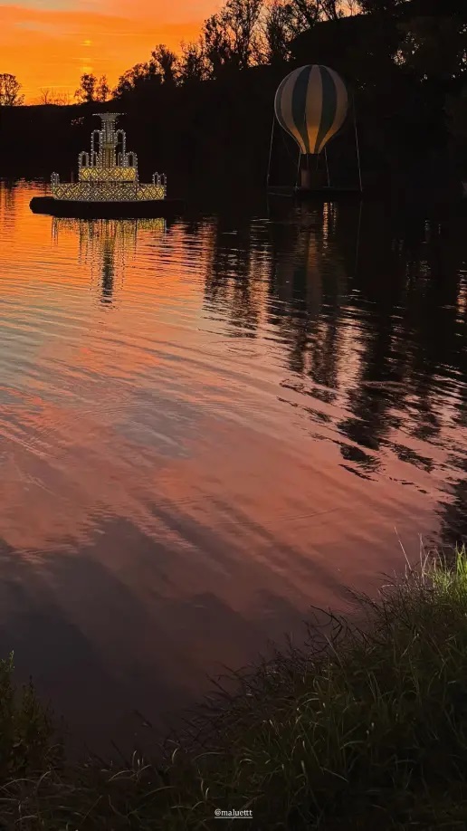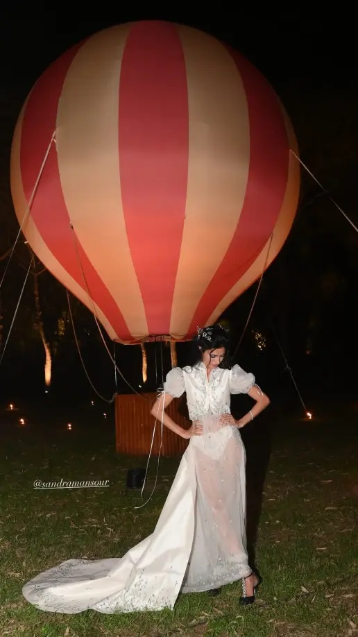 Η δεξίωση έγινε δίπλα σε μία λίμνη στην ιταλική εξοχή, με πολύχρωμα αερόστατα και ακροβάτες να μεταφέρουν τους εκλεκτούς καλεσμένους σε μία άλλη εποχή.