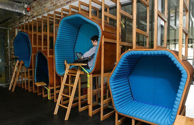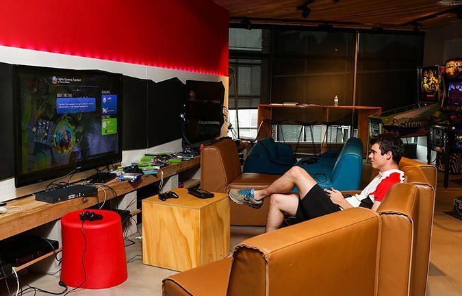Ανάκλιντρα κρεμασμένα από τοίχους, δωμάτιο επιτραπέζιων παιχνιδιών και στούντιο ηχογράφησης μουσικής είναι μόνο μερικές από τις προσφερόμενες απολαύσεις στο προσωπικό, στα κεντρικά γραφεία της Google στο Σίδνεϊ.