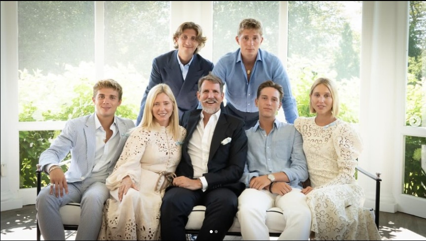 Στην φωτογραφία φαίνται η οικογένεια να κάθεται στον καναπέ και ποζάρει με φόντο τον κήπο του σπιτιού.