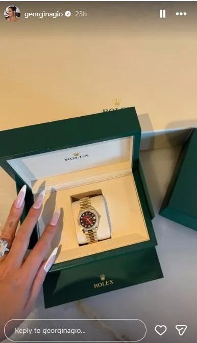 Το νέο ρολόι προστίθεται στη συλλογή πολυτελών ρολογιών της Τζορτζίνα, η οποία εκτιμάται στα 2,2 εκατομμύρια ευρώ, και περιλαμβάνει ήδη πέντε ρολόγια Rolex, τέσσερα Cartier και ένα Richard Mille.