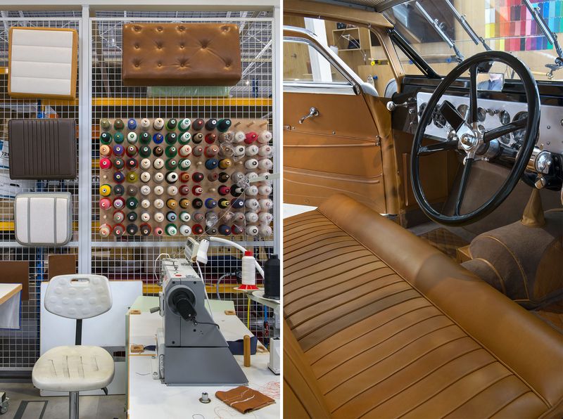 Παρομοίως, αν και το ατελιέ έχει επαναδιακοσμήσει μια σειρά από vintage αυτοκίνητα όπως το Voisin (στην πραγματικότητα, έχουν δουλέψει με δύο Voisin, ένα για έναν Αμερικανό και ένα για έναν Γάλλο), δημιουργεί επίσης καθίσματα για νέα αυτοκίνητα. Στην επίσκεψη της Δευτέρας, το προσχέδιο για το κάθισμα του οδηγού μίας Bugatti Chiron, αξίας 3 εκατομμυρίων δολαρίων, βρισκόταν πάνω σε ένα τραπέζι. «Το κλασικό κάθισμα θα είχε πολλές τρύπες και πολλές ραφές και θα ήθελα να απαλλαγούμε από όλα αυτά», λέει ο de Beaufort. Ανασχηματίζοντας τα στρώματα αφρού και δέρματος, οι τεχνίτες κατάφεραν να μετατρέψουν το κάθισμα σε μια ομαλή επιφάνεια. Το πρωτότυπο χρειάστηκε τρεις μήνες για να δημιουργηθεί.