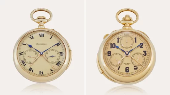 Δύο μοναδικά ρολόγια τσέπης με διπλό μηχανισμό —και μάλιστα τα μόνα γνωστά παγκοσμίως με δύο ανεξάρτητες κινήσεις που συνδέονται αποκλειστικά μέσω ενός κοινού μηχανισμού κουρδίσματος— αναμένεται να τραβήξουν τα βλέμματα των συλλεκτών στην επερχόμενη δημοπρασία της Sotheby’s Νέας Υόρκης.