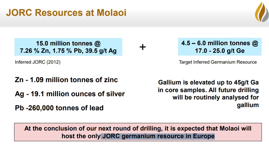 Όπως αναφέρει η RockFire Resources με την ολοκλήρωση αυτής της τρέχουσας εκστρατείας γεώτρησης, αναμένεται ότι οι Μολάοι θα φιλοξενήσουν το μόνο επιβεβαιωμένο κοίτασμα γερμανίου στην Ευρώπη.