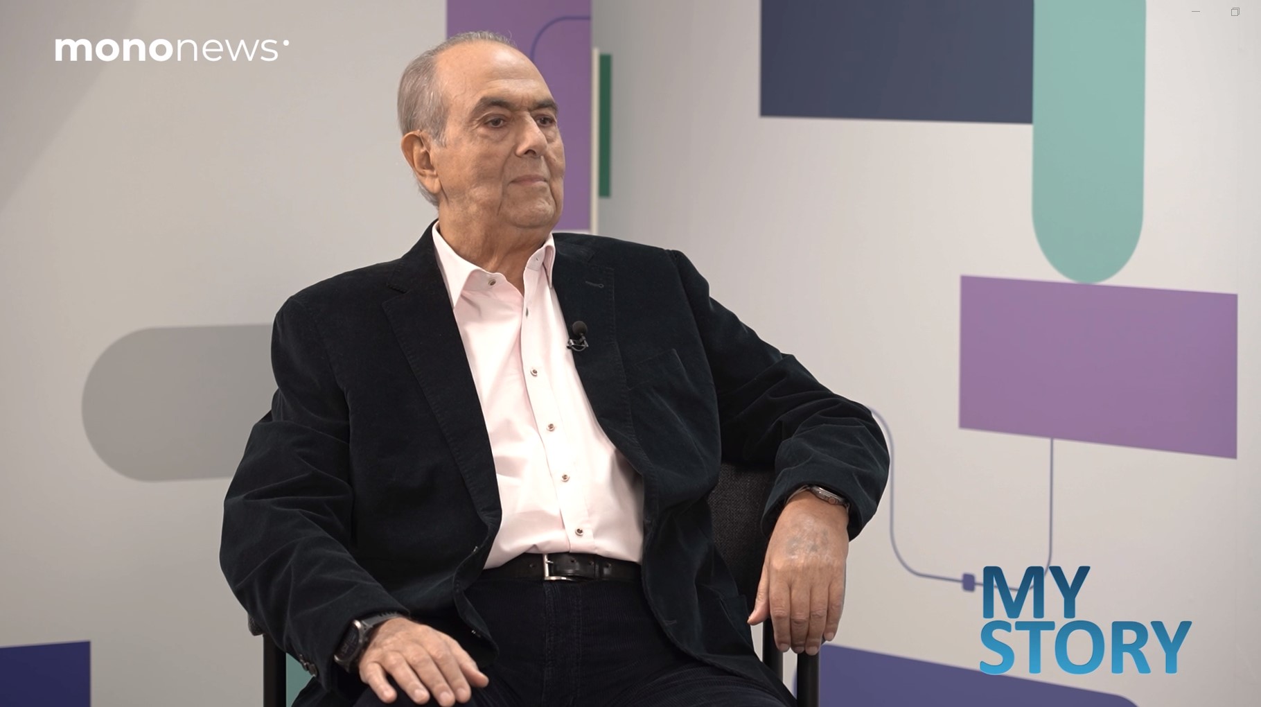Αγέρωχος, σχεδόν 2 μέτρα ύψος, κάθεται απέναντί μου με σκούρο μπλε κουστούμι και παλ ροζ πουκάμισο. Έχει αποχωριστεί εδώ και χρόνια το «μουστάκι σήμα κατατεθέν», είναι ευδιάθετος και έτοιμος να μιλήσει για όλα. Από τα χρόνια που διοικούσε την επιχείρηση από το ΚΨΜ, όντας φαντάρος, έως τις δεκαετίες που πέρασαν δουλεύοντας ασταμάτητα, καβαλώντας μια μηχανή, ξεπερνώντας δυσκολίες και σκληρό ανταγωνισμό με στήριγμα τη γυναίκα του και τον πατέρα του.
