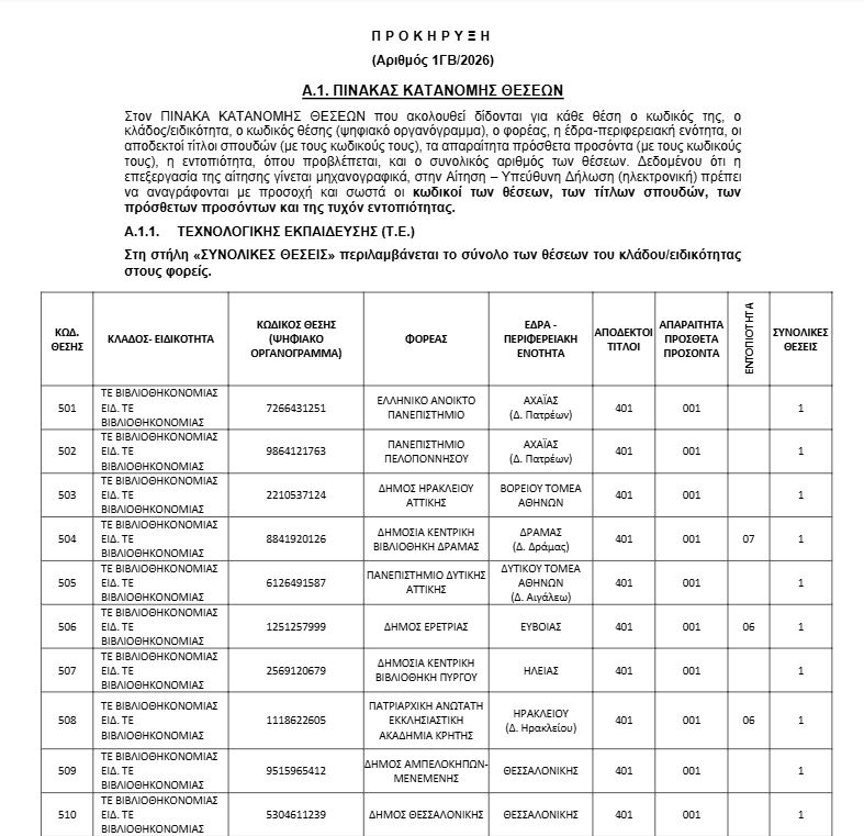 Δείτε τις θέσεις της προκήρυξης: