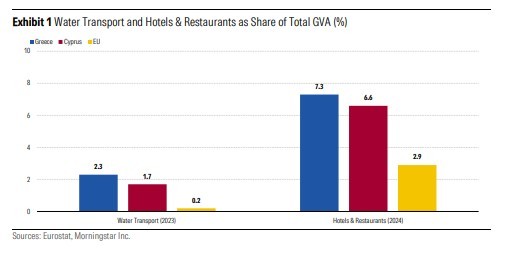 Οι κλάδοι του τουρισμού και της ναυτιλίας διαδραματίζουν πολύ σημαντικότερο ρόλο στις οικονομίες της Κύπρου και της Ελλάδας