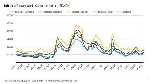 Ωστόσο, οι αυξημένες αποστάσεις ταξιδιού, η αυξημένη κατανάλωση καυσίμων και τα αυξανόμενα ασφάλιστρα κινδύνου πολέμου ασκούν ανοδική πίεση στους ναύλους.