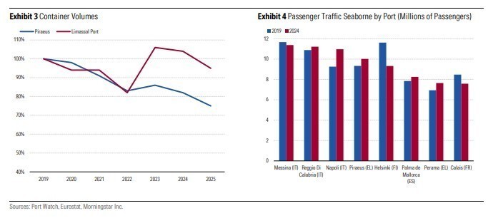 Η Λεμεσός στην Κύπρο έχει επίσης υποστεί συνεχείς απώλειες όγκου από το 2024, παρά τη συνεχιζόμενη επέκταση της χωρητικότητας.