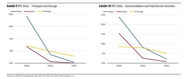 ενάντια στις πιέσεις που σχετίζονται με τον τουρισμό, υποστηρίζει τη συγκριτικά ισχυρότερη βραχυπρόθεσμη ανθεκτικότητα των ελληνικών τραπεζών.