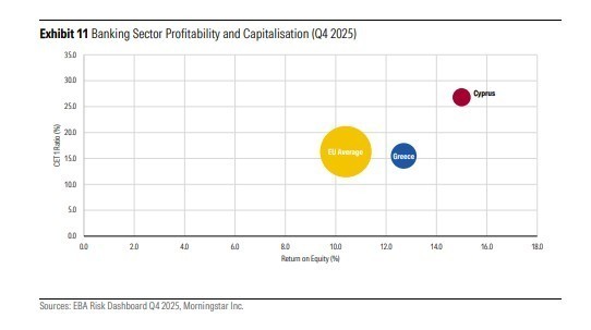 Εντούτοις, τόσο οι ελληνικές όσο και οι κυπριακές τράπεζες διατήρησαν κερδοφορία άνω του μέσου όρου της ΕΕ το 4ο τρίμηνο του 2025 (Διάγραμμα 11).