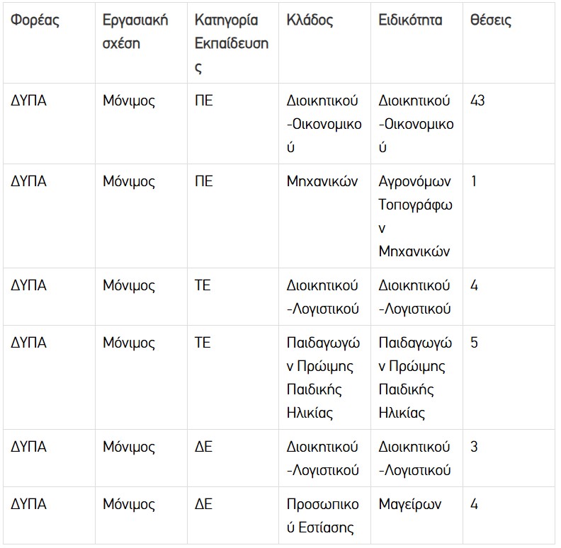 Οι ειδικότητες για τις 60 μόνιμες προσλήψεις στην ΔΥΠΑ το 2026, είναι οι εξής:
