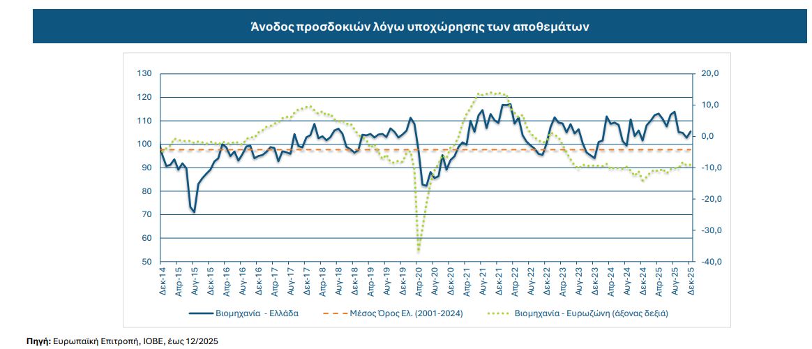 Βελτίωση των προσδοκιών σημειώθηκε στη Βιομηχανία τον Δεκέμβριο, σε σχέση με ένα έτος νωρίτερα, ενώ ενισχύθηκε επίσης το οικονομικό κλίμα και η καταναλωτική εμπιστοσύνη, σύμφωνα με το δελτίο εξελίξεων στη βιομηχανία του Ιδρύματος Οικονομικών & Βιομηχανικών Ερευνών (ΙΟΒΕ).