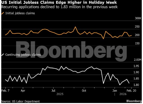Οι συνεχιζόμενες αιτήσεις, ένας δείκτης για τον αριθμό των ατόμων που λαμβάνουν επιδόματα, μειώθηκαν στα 1,83 εκατομμύρια την προηγούμενη εβδομάδα.
