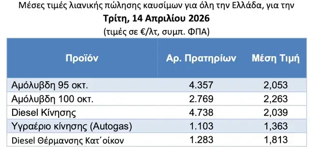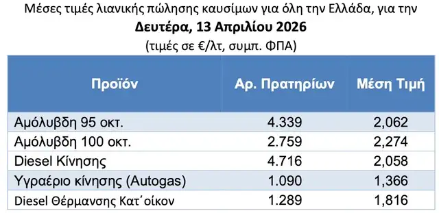 Την Τρίτη ακολούθησε μια οριακή περαιτέρω μείωση, με την αμόλυβδη να πέφτει στα 2,053 ευρώ ανά λίτρο και το πετρέλαιο κίνησης στα 2,039 ευρώ. Σε σύγκριση με τη Μεγάλη Εβδομάδα, η τιμή της βενζίνης εμφανίζεται μειωμένη κατά περίπου 4 έως 5 λεπτά το λίτρο, ενώ το πετρέλαιο κίνησης είναι χαμηλότερο κατά περίπου 11 λεπτά.