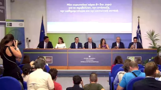 Την παρουσίαση των τριών νέων ευρωπαϊκών ταμείων με κονδύλια ύψους άνω των 8 δισ. ευρώ παρουσίασε η κυβέρνηση σε Διυπουργική Συνέντευξη Τύπου, με θέμα «Nέοι ευρωπαικοί πόροι άνω των 8 δις. ευρώ για το περιβάλλον, την ανάπτυξη, την καθημερινότητα και τη φτώχεια»