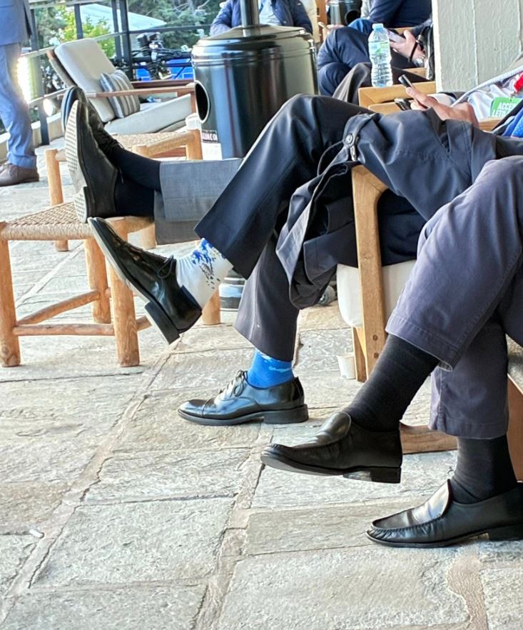 Ο εν λόγω κύριος, λοιπόν, που κάθεται στο χώρο του συνεδρίου των Δελφών, φοράει ιδιαίτερα πρωτότυπες κάλτσες οι οποίες έχουν… τον χάρτη της Ελλάδας.