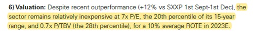 Για να καταλάβετε η Goldman μας λέει ότι αυτή τη στιγμή οι ευρωπαϊκές τράπεζες παίζουν κατά μέσο όρο με ένα P/E2023e=7, το οποίο σε βάθος 15ετίας είναι στο 20th percentile.