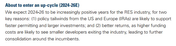 Εδώ, έρχεται και δένει το report που έβγαλε η Goldman Sachs στις 6 Φεβρουαρίου για τις ΑΠΕ που βλέπει να ξεκινάει ένας μεγάκυκλος επενδύσεων στην Αμερική αλλά και στην Ευρώπη κυρίως στην κατασκευή φωτοβολταϊκών πάρκων.