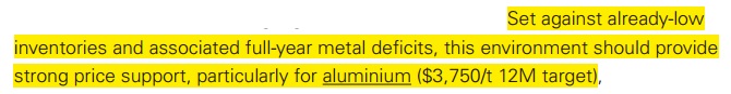 Η Goldman όμως βάζει κι άλλη πλάτη στον όμιλο ΜΥΤΙΛΗΝΑΙΟ και συγκεκριμένα στις 9 Φεβρουαρίου έβγαλε report λέγοντας ότι σε 12 μήνες από τώρα δηλαδή στα τέλη Φλεβάρη του 2024 βλέπει την τιμή του αλουμινίου να πηγαίνει στα $3,750/t.
