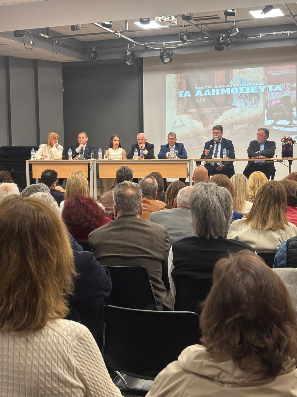 Κατάμεστη για ακόμη μια φορά ήταν και χθες η αίθουσα που φιλοξένησε την τέταρτη εκδήλωση για το βιβλίο του «δικού μας» Νίκου Χασαπόπουλου, «Τα Αδημοσίευτα». Ο πολύπειρος δημοσιογράφος παρουσίασε το βιβλίο του αυτή τη φορά στο Πνευματικό Κέντρο στον Αγιο Στέφανο με πολύ εκλεκτούς καλεσμένους οι οποίοι μίλησαν με θερμά λόγια. Και για τον συγγραφέα αλλά και για το εκδοτικό πόνημά του με ιστορίες που… έγραψαν ιστορία.